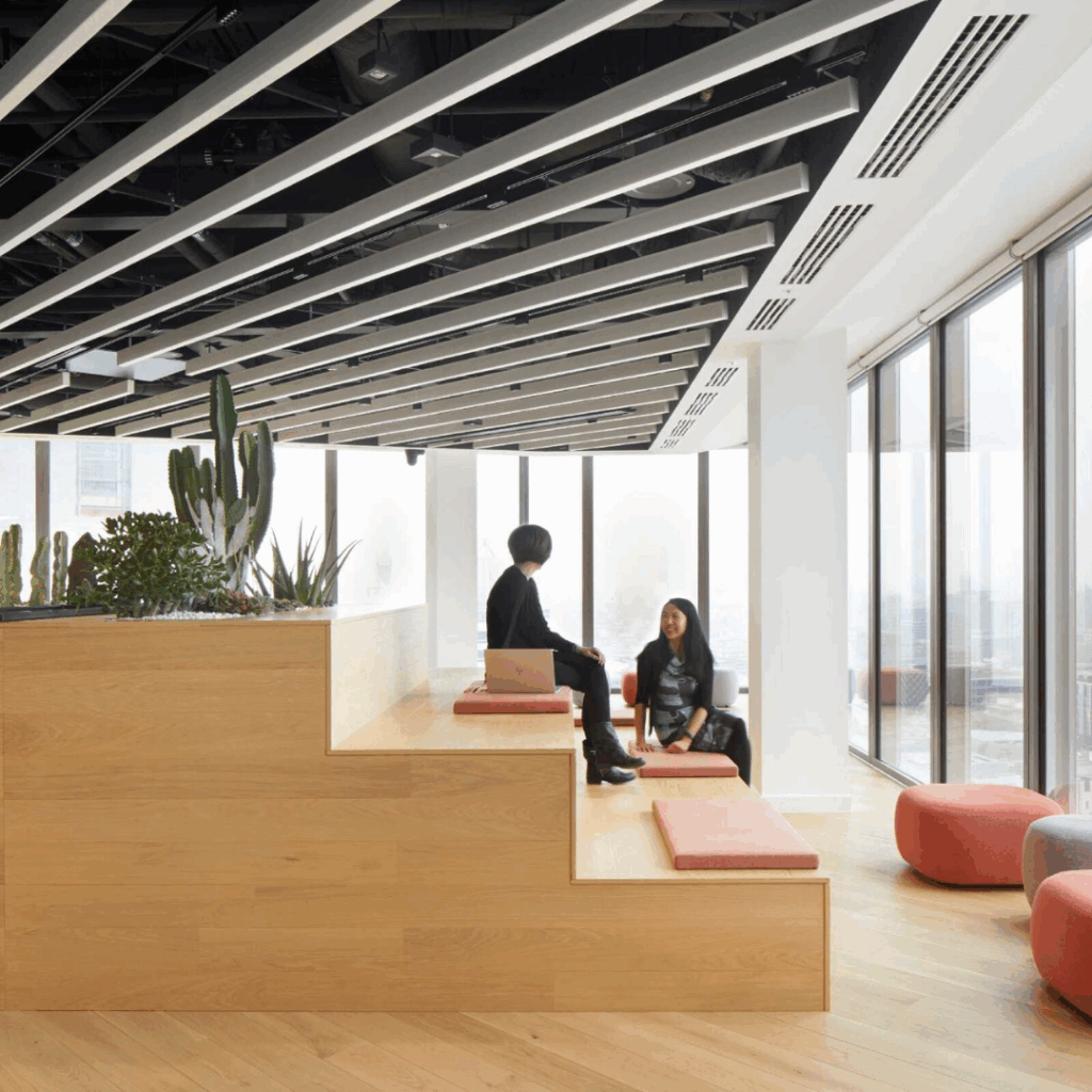 Fora da área de escritórios, aproximadamente 100.000 pés quadrados são dedicados a instalações que visam melhorar a experiência cotidiana dos usuários do edifício e do público.