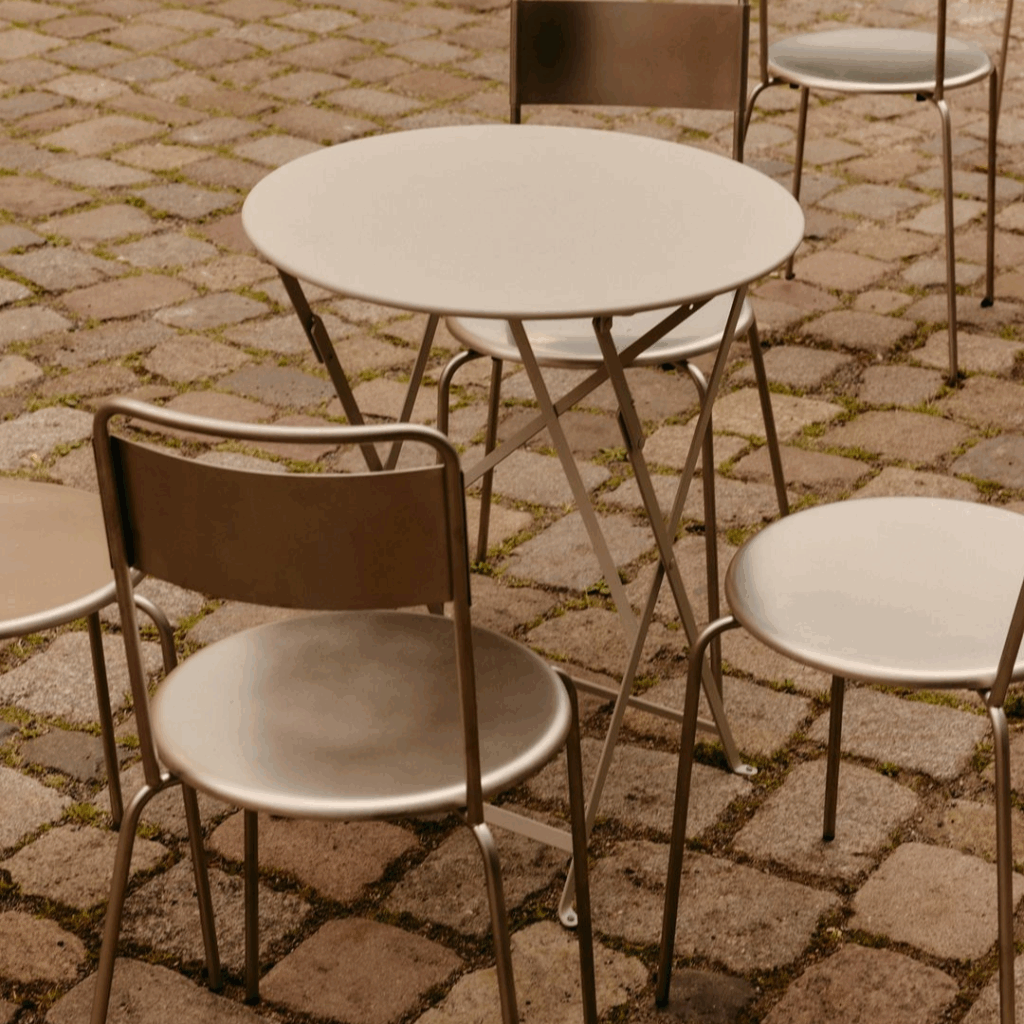 O café ocupa uma esquina proeminente com vista para a Teutoburger Platz, a poucos passos do antigo complexo industrial que agora abriga os estúdios de Ai Weiwei e Olafur Eliasson.