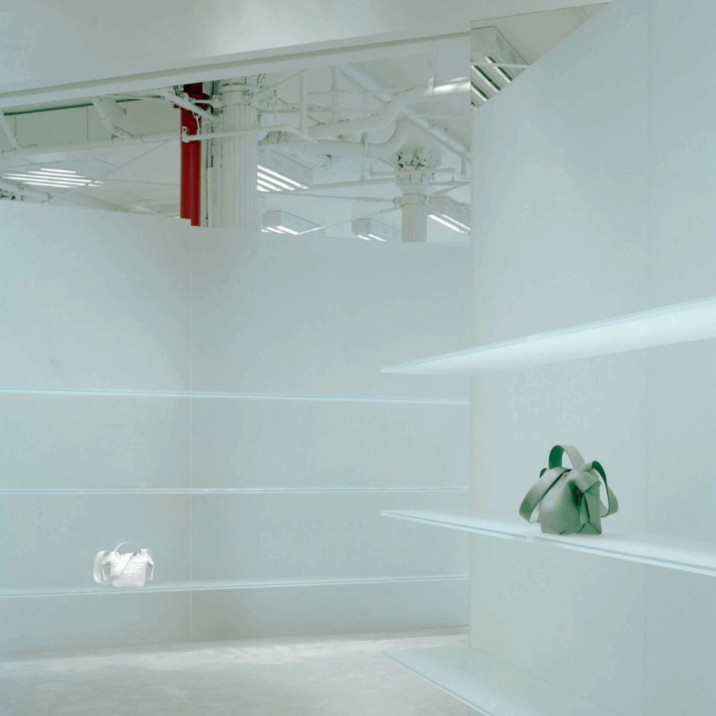 É esse equilíbrio, vidro e lã, translucidez e tato, que dá à loja seu pulso distinto.