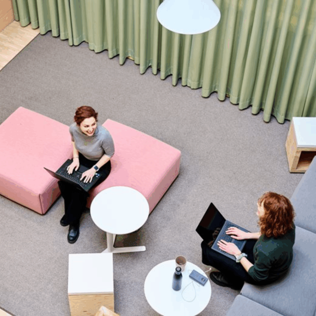 O laboratório da equipe é a única sala fechada e é projetado para reuniões ou colaborações ocasionais.
