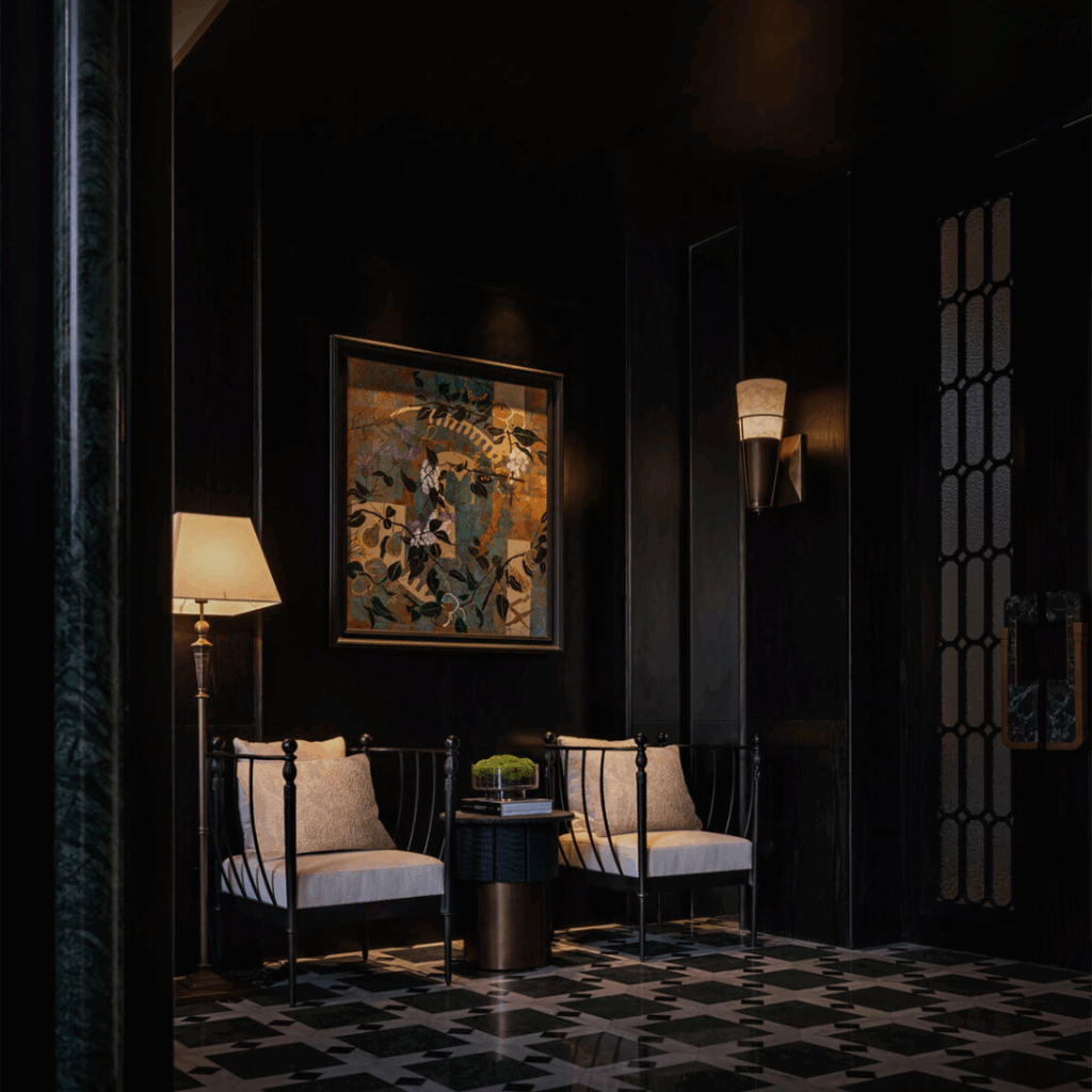 O design captura uma interação refinada de contenção clássica e ousadia de vanguarda, evocando o charme imersivo de uma mansão haipai moderna.