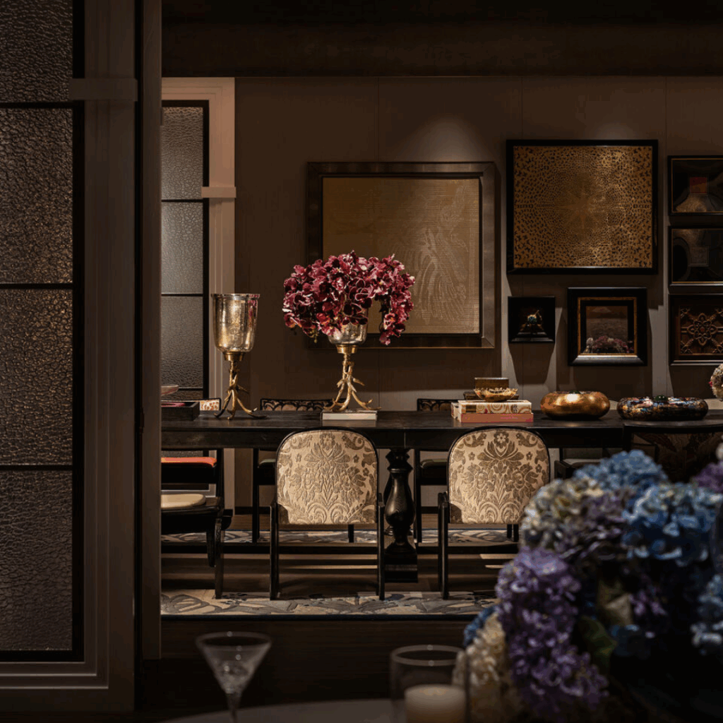 Motivos refinados inspirados na arquitetura Shikumen infundem o espaço com uma sensação de ritual, onde o charme clássico e a estética vanguardista contemporânea se entrelaçam para criar uma experiência enriquecida e encantadora.