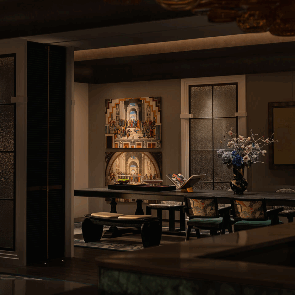 Inspirado na fusão dos estilos de vida orientais e ocidentais adotados pela elite cultivada na era republicana, o interior se desdobra como uma série de espaços temáticos como “Four Seasons Flower Hall”, “Private Banquet Hall”, “Study” e “Tea Room” – cada um capturando a essência da vida refinada.