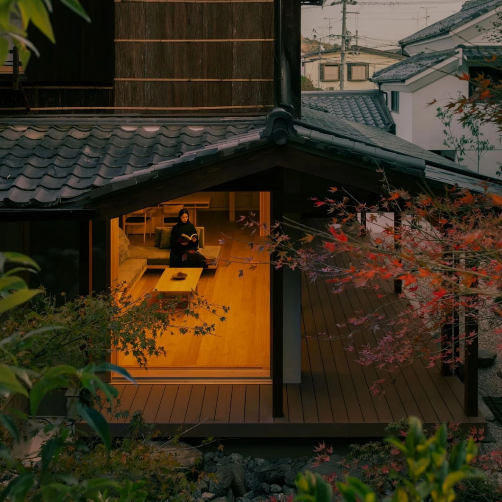 Nos arredores de Kyoto, o Ko-oo Archtitects recalibra uma residência existente no estilo Sukiya em um terreno suavemente inclinado na beira de uma encosta arborizada, introduzindo uma cachoeira projetada entre a casa principal e o anexo, e extraindo a lógica espacial da arquitetura tradicional japonesa para servir a vida contemporânea.