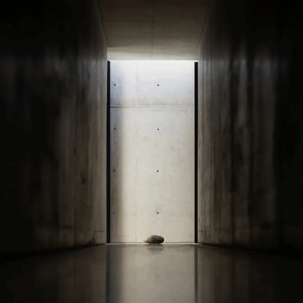 O projeto evita deliberadamente exposições frontais, optando por aberturas angulares, limiares espessos e sombras profundas que medeiam entre o interior e o exterior.