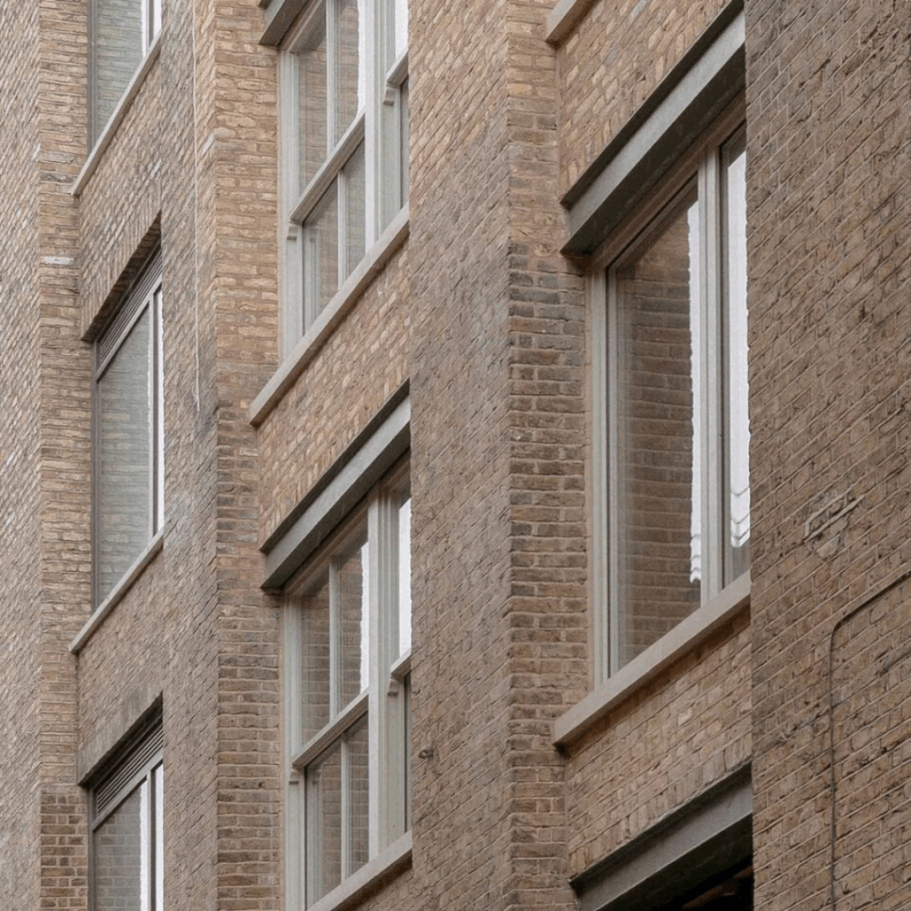 Aqui, os detalhes da fachada articulada são inspirados nos painéis de tijolos embutidos, lintéis decorativos e peso visual dos edifícios vitorianos adjacentes.