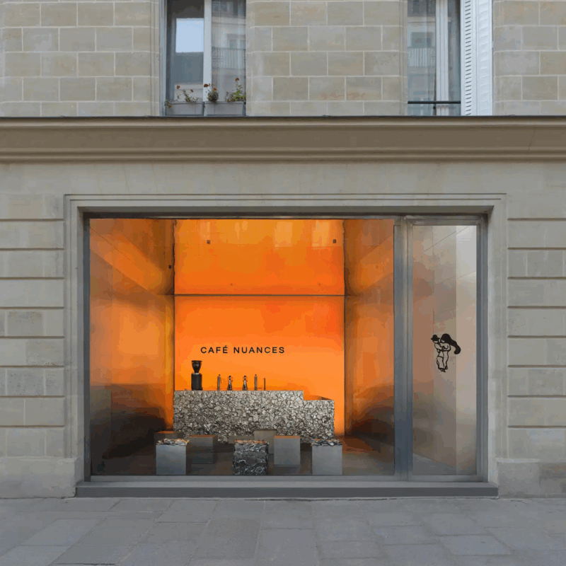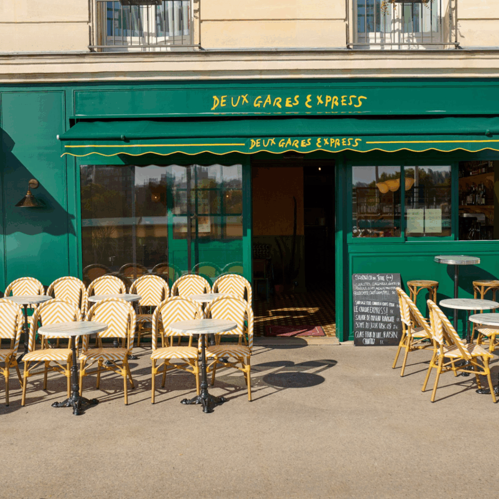 Localizado ao lado do hotel Les Deux Gares, o espaço pretendia ter uma sensação diferente do restaurante interno existente no hotel.