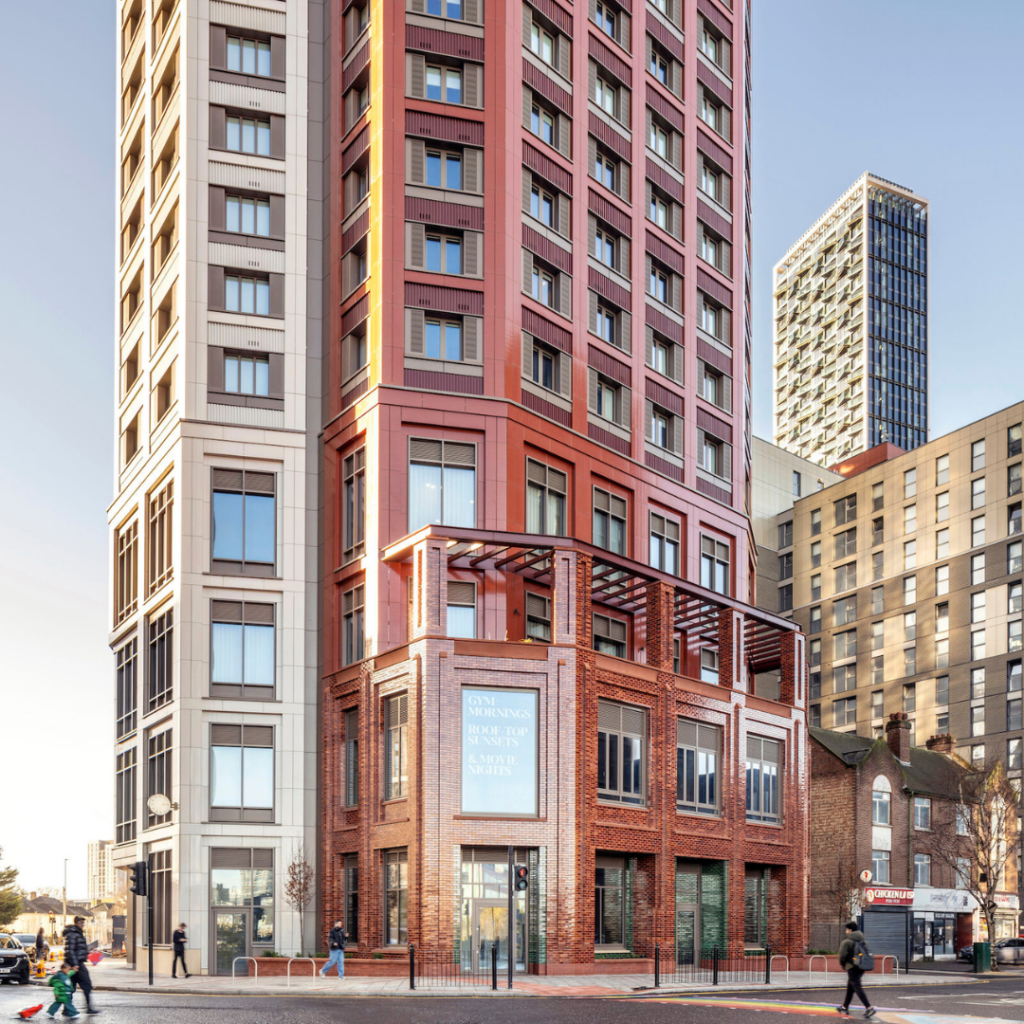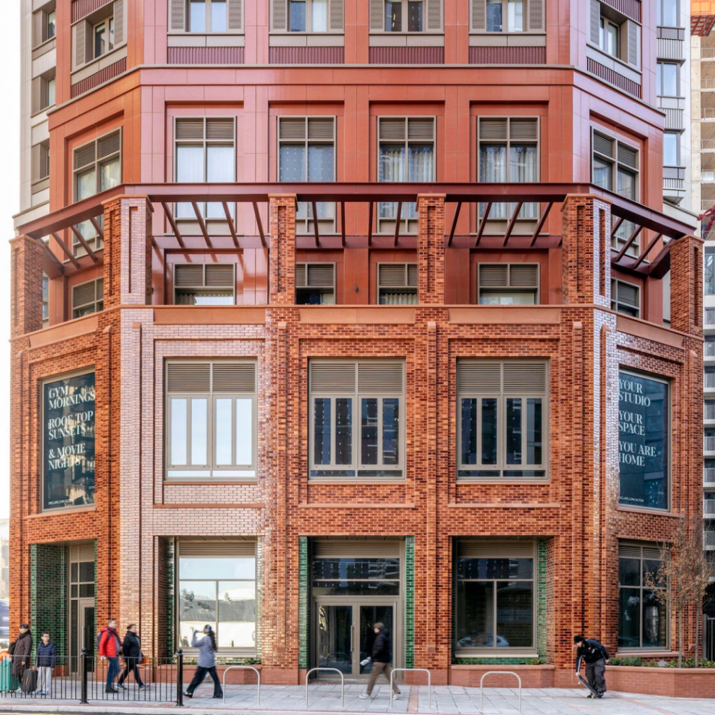 Projetado pela HTA Design, o edifício ocupa o antigo local do Castle Pub, ancorando um terreno de esquina de destaque dentro da regeneração mais ampla da área Old Oak and Park Royal Opportunity, no oeste de Londres.