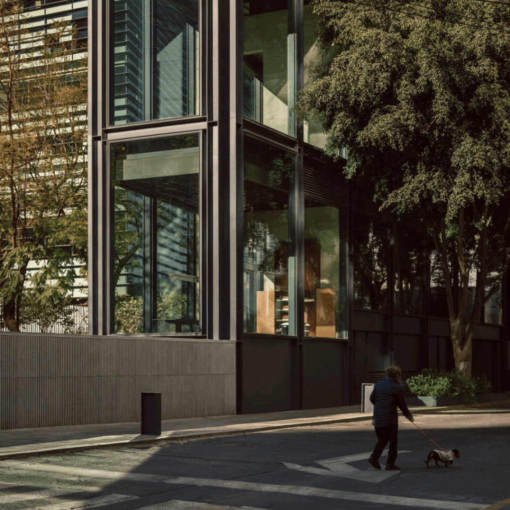 No entanto, no 13º andar, a área interna recua, permitindo um telhado generoso que oferece vistas panorâmicas que se estendem do horizonte da cidade até o Parque Chapultepec.