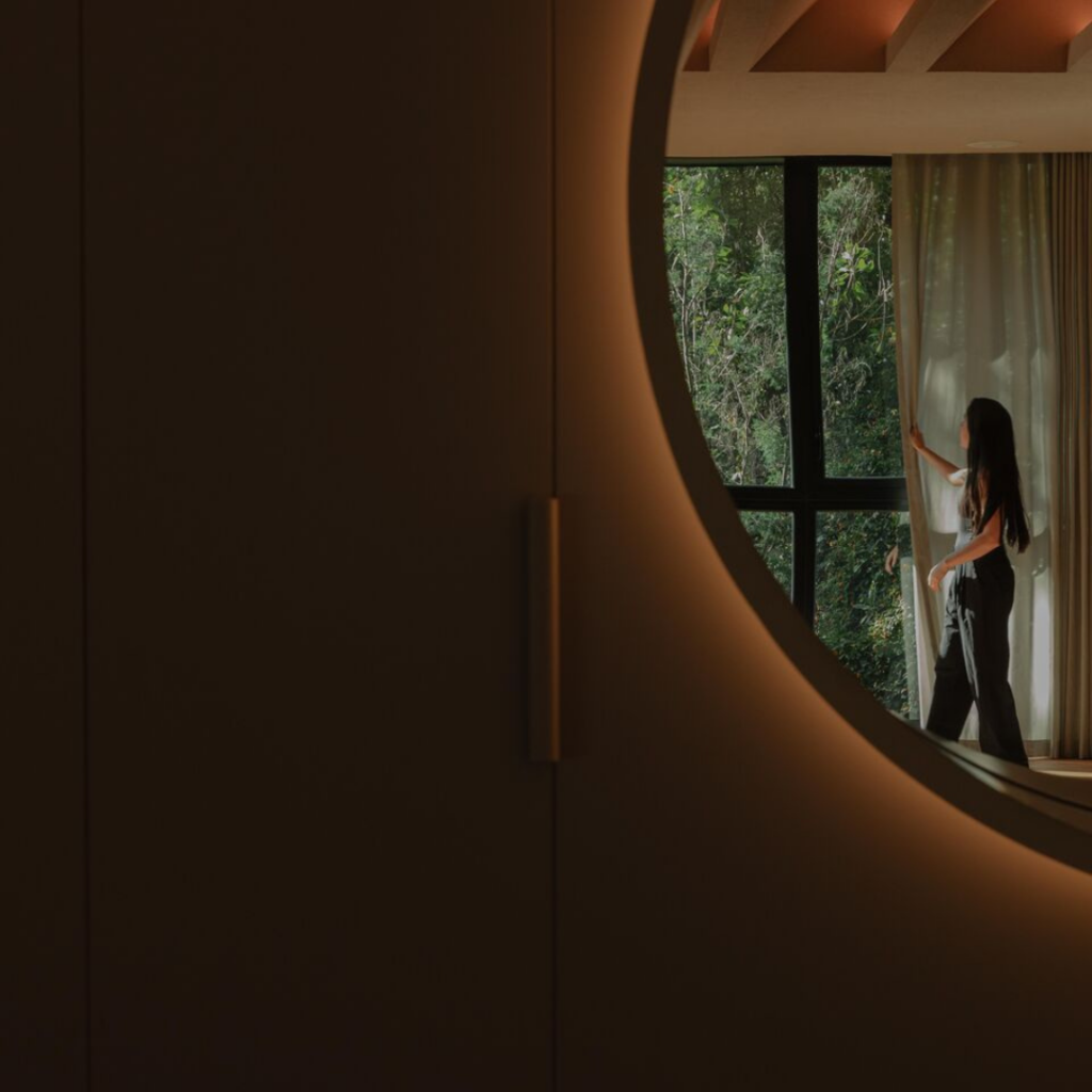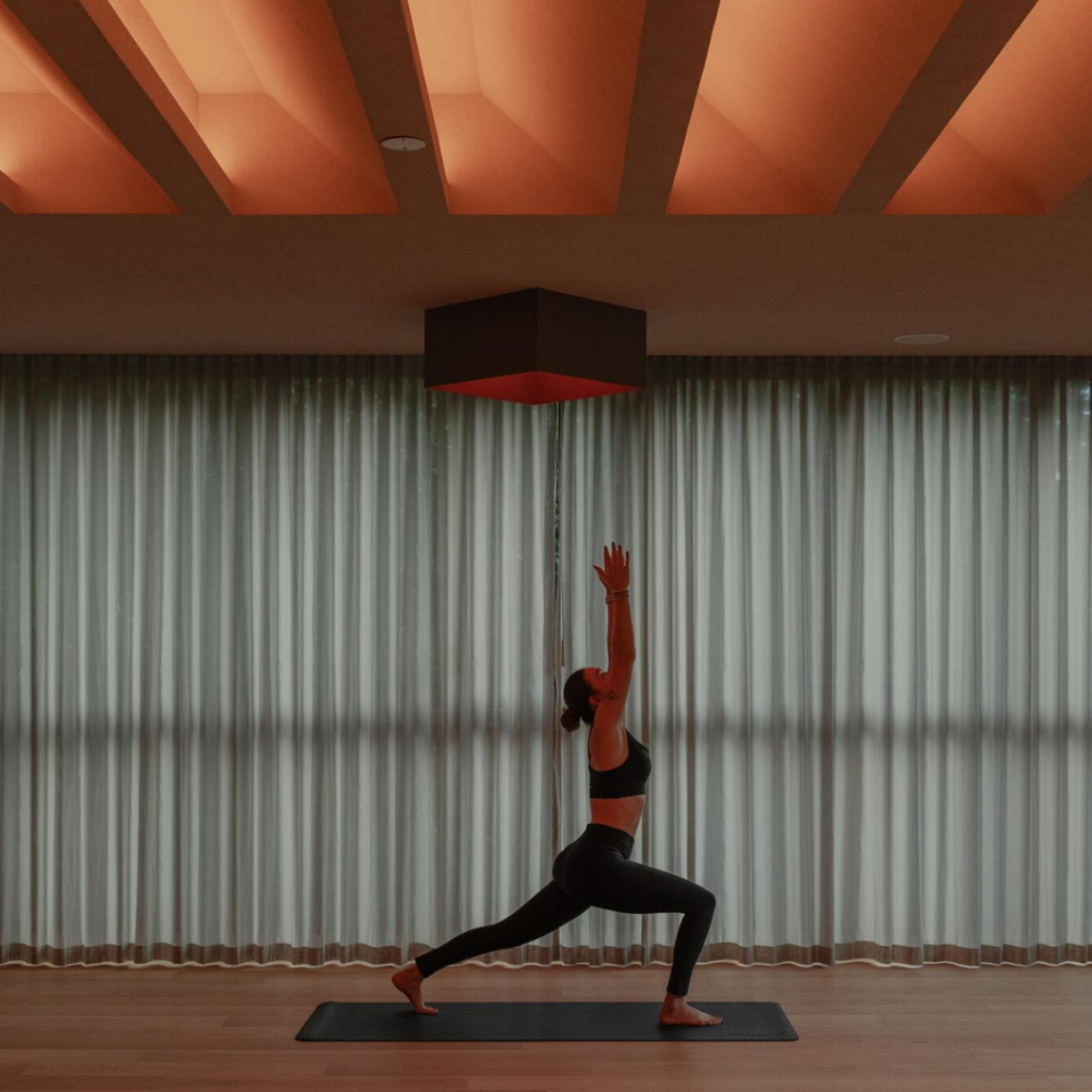 Projetado pelo Estudio Dedós, o conceito de iluminação foi desenvolvido para apoiar práticas de mindfulness, respeitando os ritmos naturais do corpo e a arquitetura do espaço.