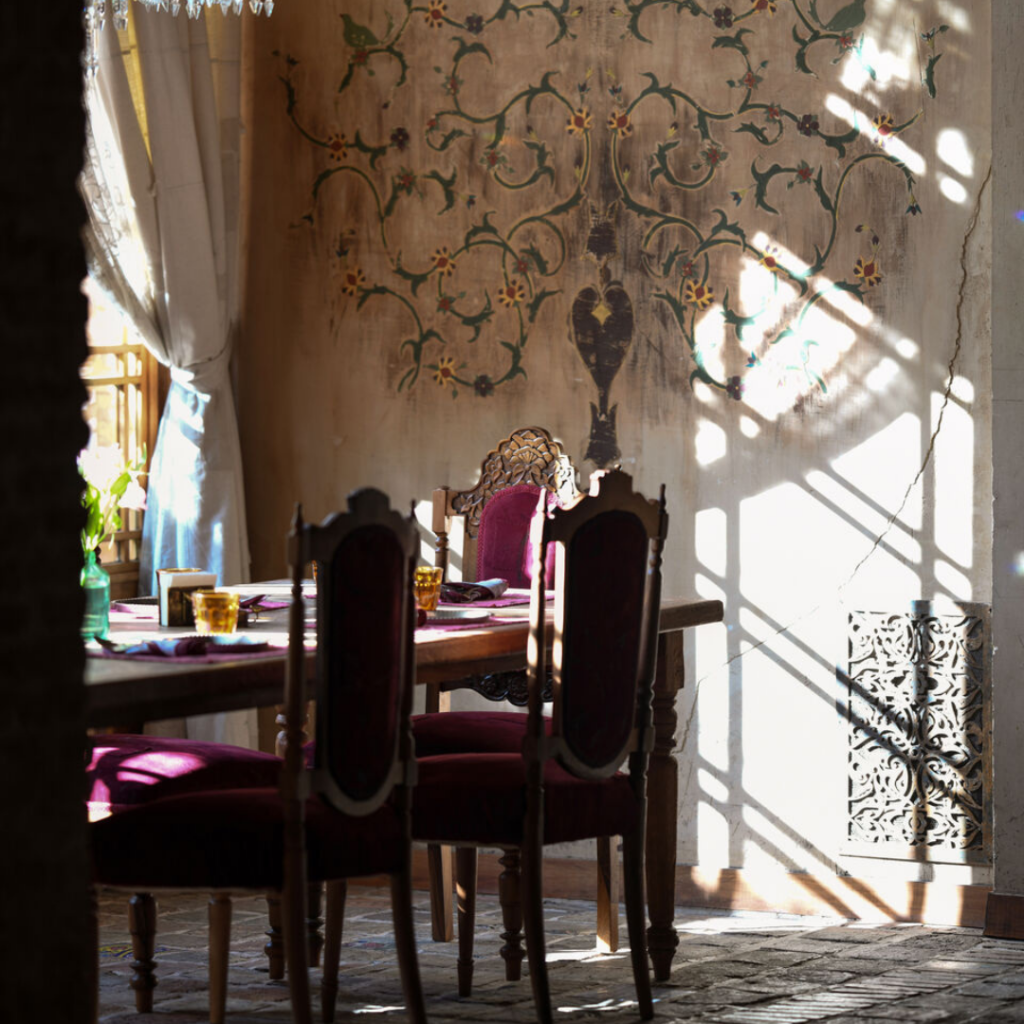 “Khas neshin”, com pátio privativo, é um canto com todas as luzes, cores e memórias, e “Hayat” é um resquício dos sons da infância ao lado da piscina turquesa.