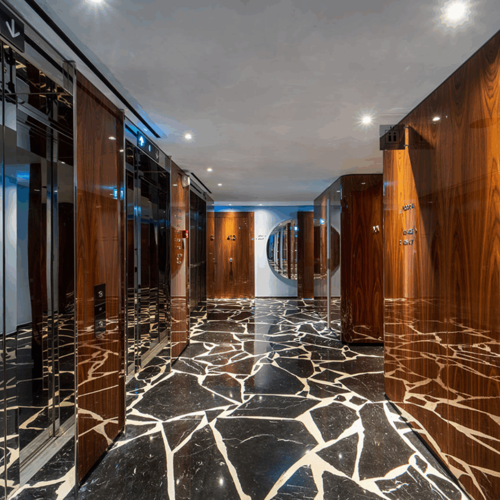 “É moderno, mas apresenta uma estética clássica e duradoura, dando vida à elegância e energia de Milão com toques como janelas do chão ao teto, varandas privativas e materiais italianos exclusivos”.