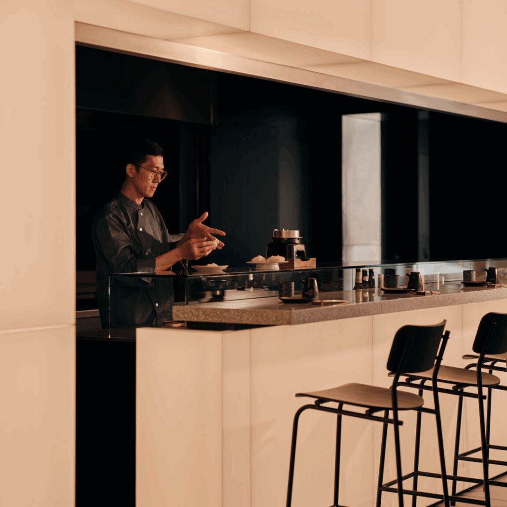 As zonas de estar são projetadas para serem íntimas, mas fluidas, de assentos de bar a mesas compartilhadas, permitindo experiências gastronômicas privadas e comunitárias.