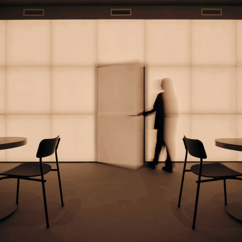 Ele pode combinar ou contrastar a cor e o brilho da parede principal, introduzindo uma nova camada de interação espacial e oferecendo a possibilidade de “diferentes restaurantes dentro de um”.