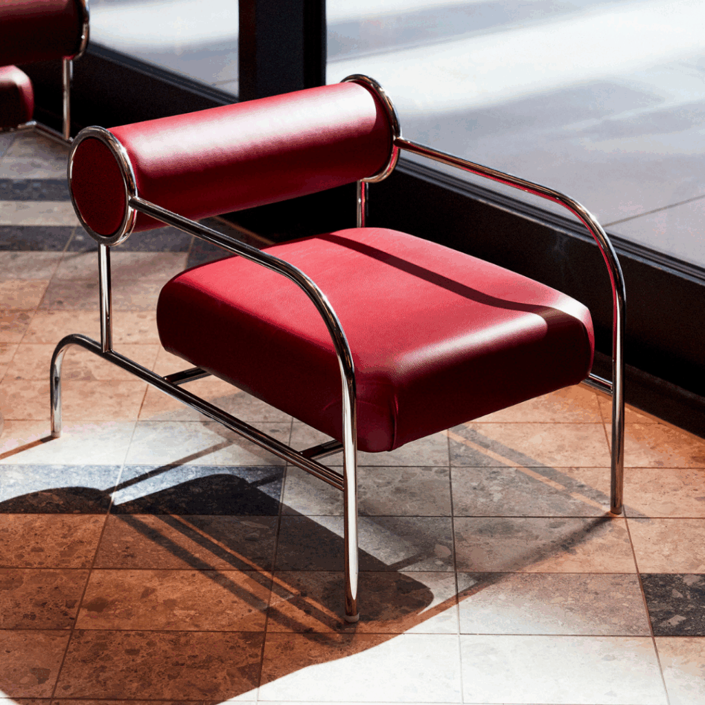 Inspirando-se em grandes cafés europeus clássicos e restaurantes italianos tradicionais de Nova York, o espaço apresenta abajures de papel superdimensionados, revestimentos de parede de tecido amarelo de grama e painéis de olmo com colunas de azulejo.