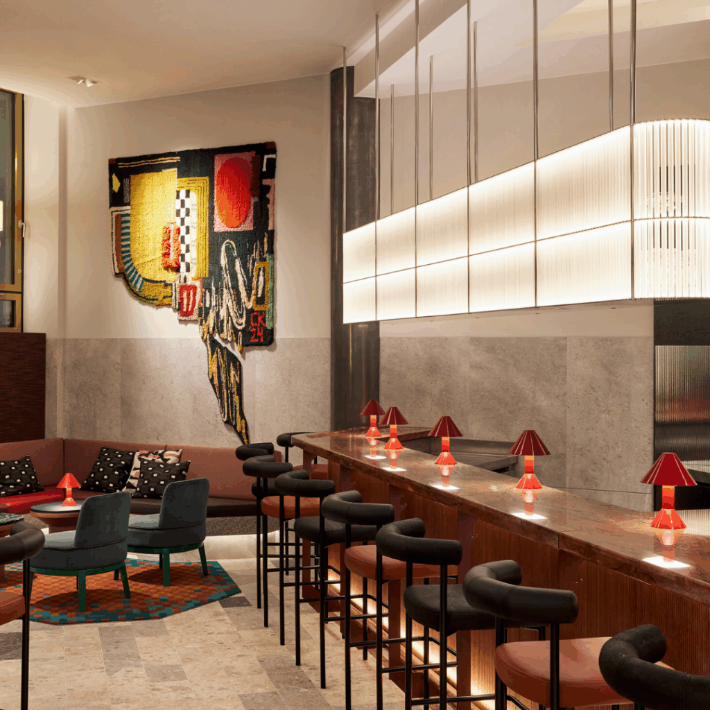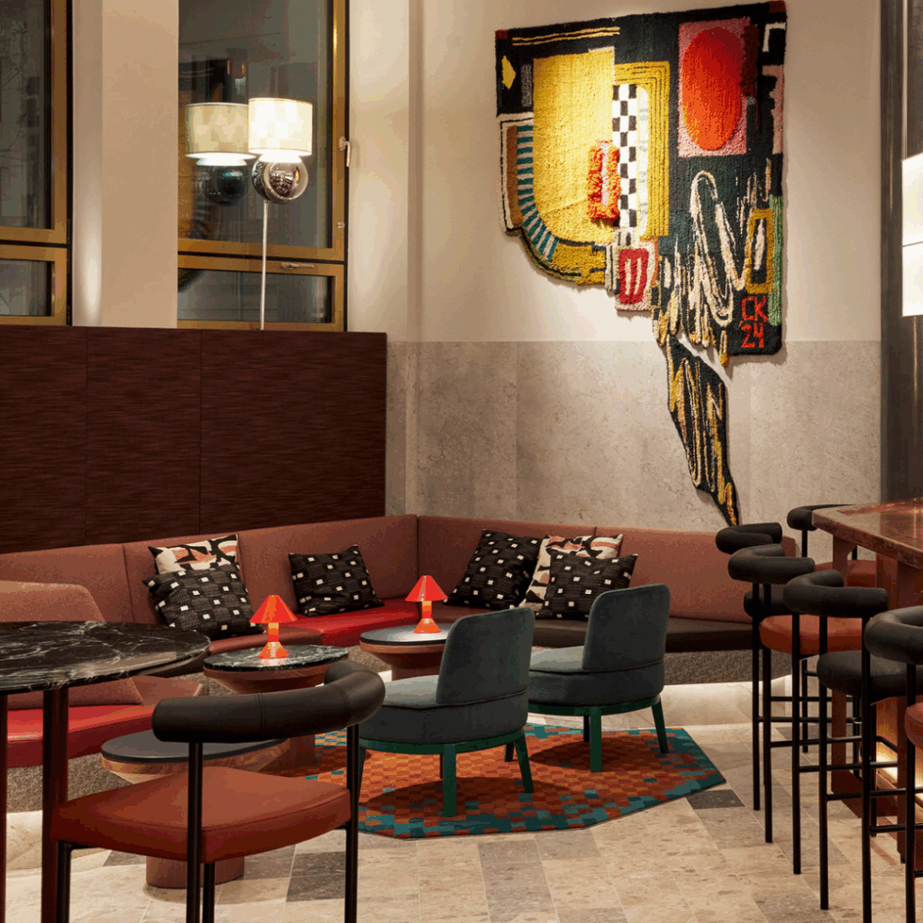 O ANNI, o restaurante do hotel, presta homenagem à artista têxtil da Bauhaus Anni Albers por meio de sua sinalização têxtil bordada e filosofia de design.