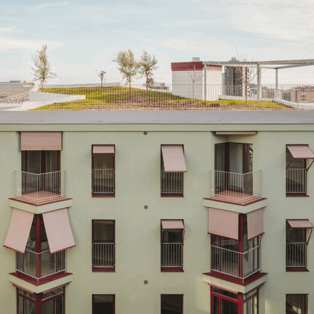 Batizado de La Comunidad Habitacional, o bloco de 51 unidades faz parte do conjunto habitacional Illa Glòries, uma área de renovação urbana que foi concluída em 2024.