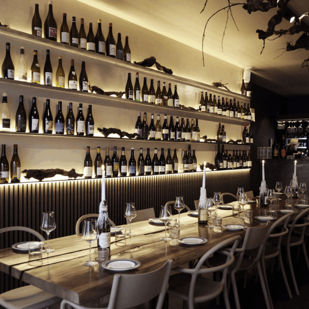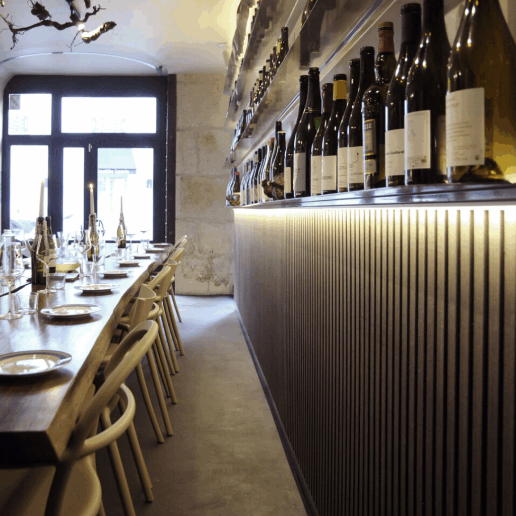 Localizado no coração do Marais, entre a Place de la Bastille e a Place des Vosges, a Rue des Tournelles, o bar de vinhos combina requinte com excentricidade contemporânea, animado por semanas de moda e eventos culturais.