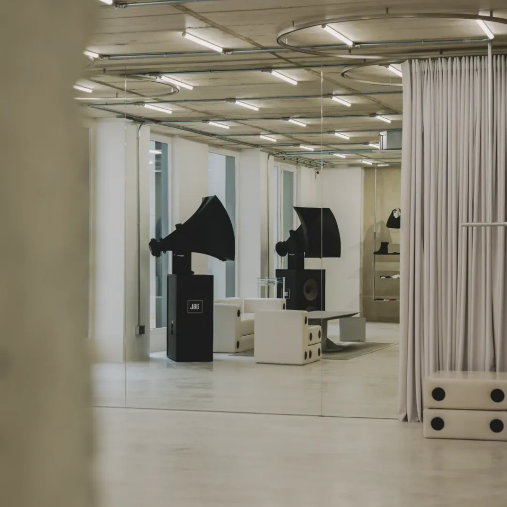 A encenação da loja é um gesto destilado rumo ao futuro do espaço adaptável.