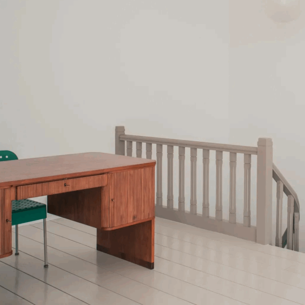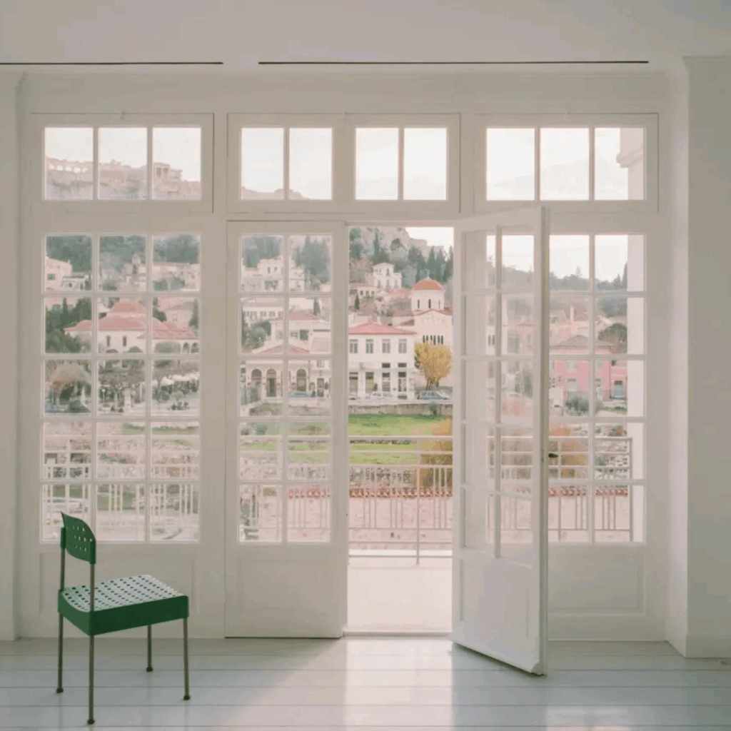 Lá, uma paleta cinza claro unificada oferecia um pano de fundo neutro, mas carregado, para obras de arte contemporâneas e relíquias de família, enquanto fragmentos arquitetônicos preservados, como os arcos de Takis Zenetos dos anos 1960, dobravam várias épocas em uma única conversa espacial.