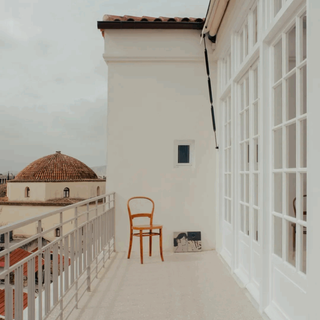 Os arquitetos estão trabalhando com um ethos de restauração cuidadosa, combinando interiores brancos luminosos com elementos atenienses tradicionais, balaustradas de ferro forjado, painéis de madeira treliçada, pisos de tijoleira, materiais que guardam a memória do lugar.