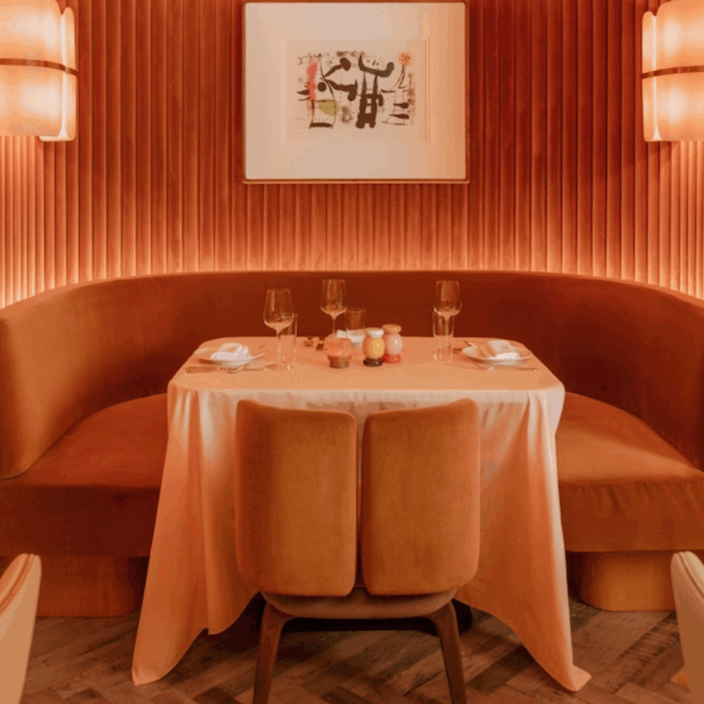 As banquetas estão aninhadas em nichos suavemente iluminados pela iluminação da enseada, aumentando a intimidade semelhante a um casulo.