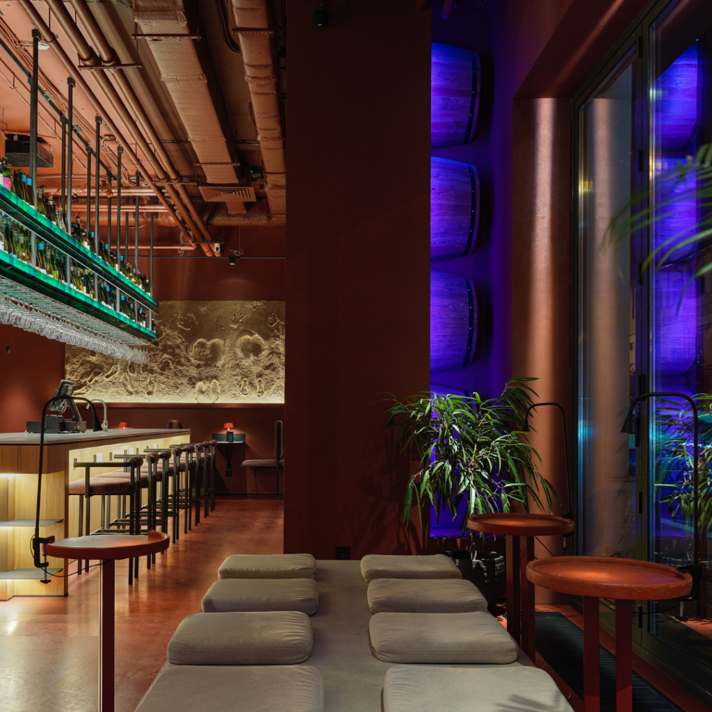 O Na bokalchik, projeto do Duplex Architecture & Interior, em Kazan, Rússia, é um bar de vinhos cotidiano que mistura leveza e facilidade com um significado profundo impregnado em cada detalhe.