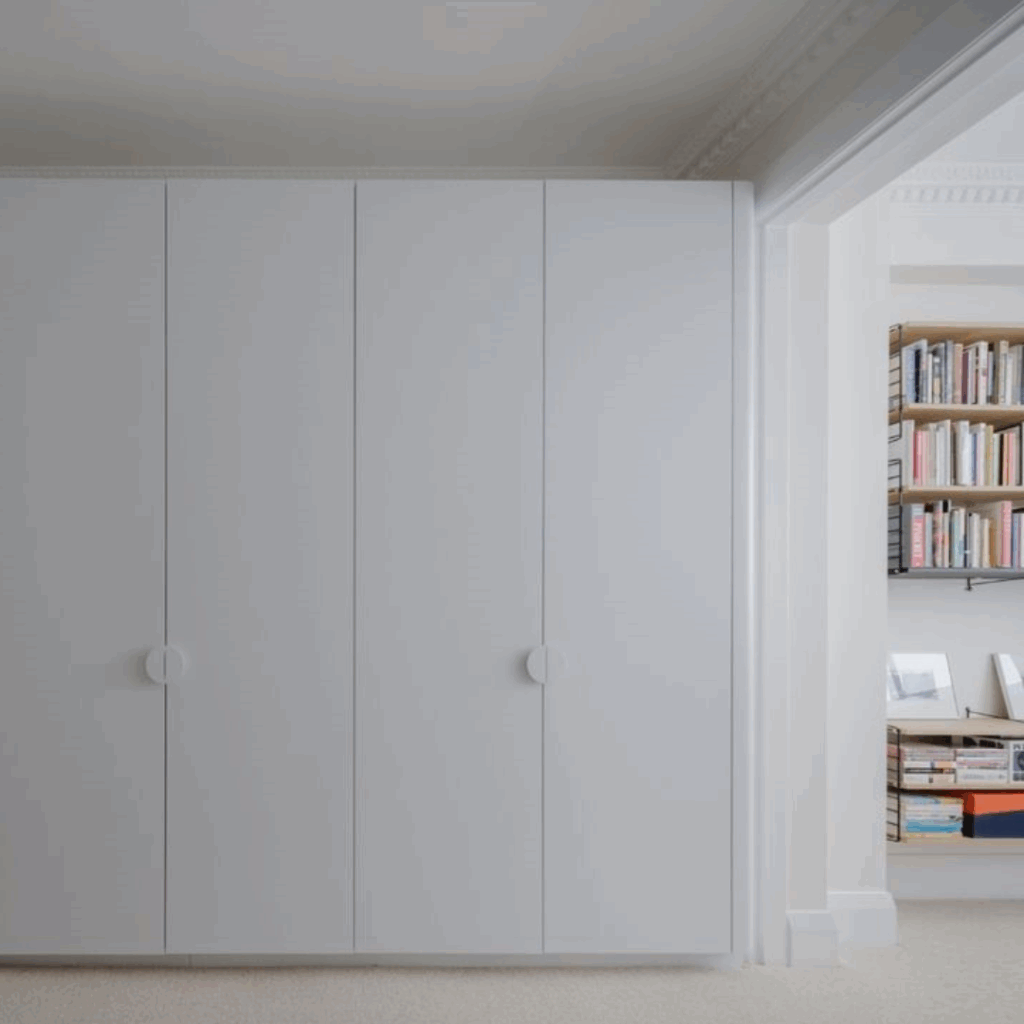 Em todo o apartamento, a marcenaria curva suaviza as transições, expandindo discretamente o espaço de armazenamento e reforçando a coerência espacial.