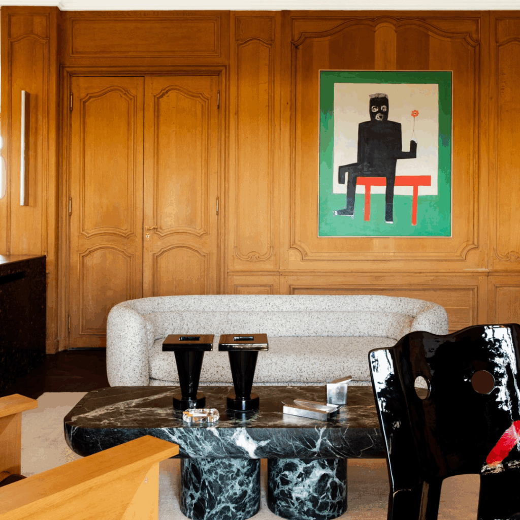 O escritório de design francês Studio Asaï reformulou uma residência em Paris informada pela vibrante vida noturna dos “anos sessenta” de Londres.