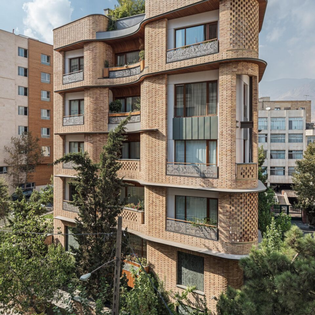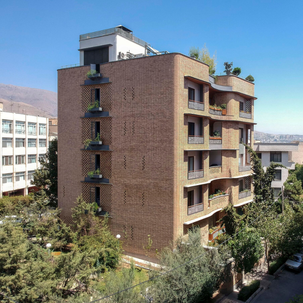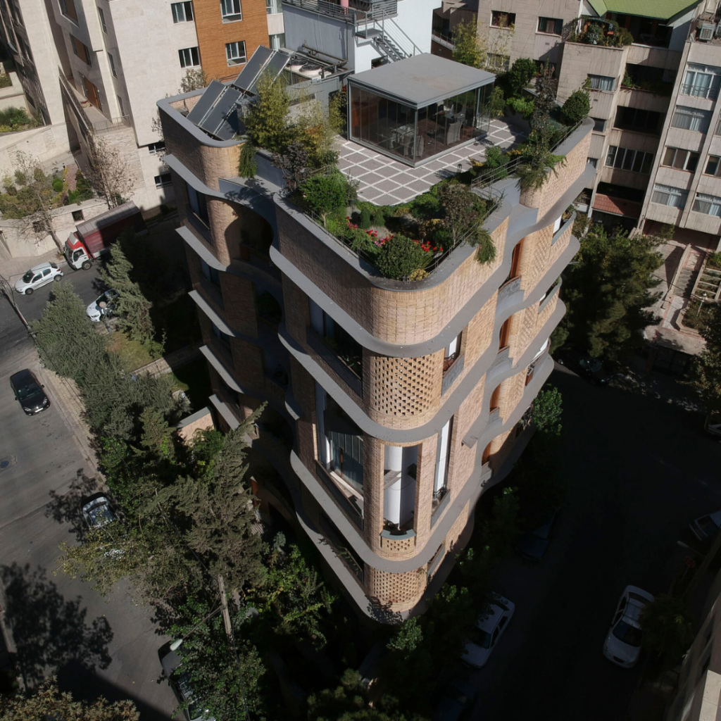 O terreno deste imóvel, projeto do Pargar Architecture and Design Studio, possui 4 fachadas e está localizado em Teerã, como uma ilha ao lado de um parque local.