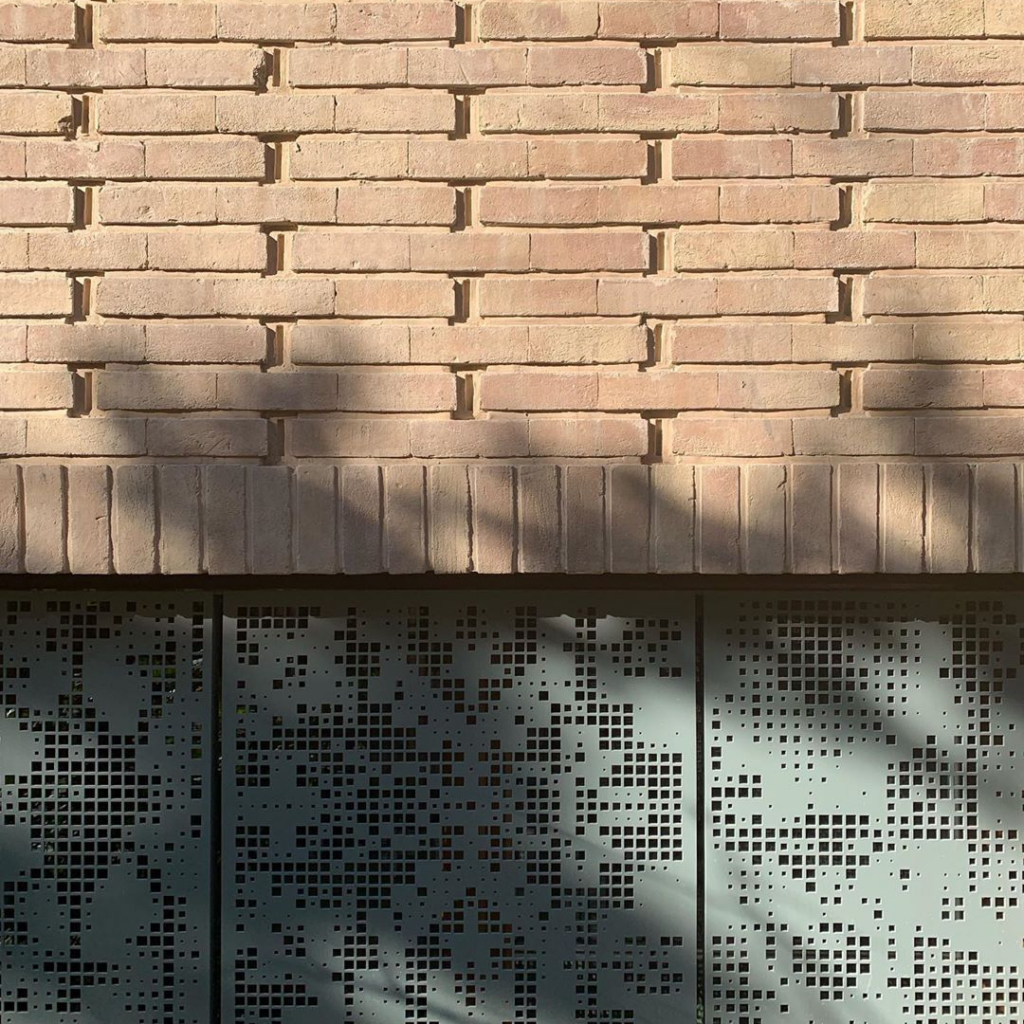 O núcleo interno do interior branco puro foi abraçado por uma delicada casca de tijolos e influenciado pelos eixos principais.