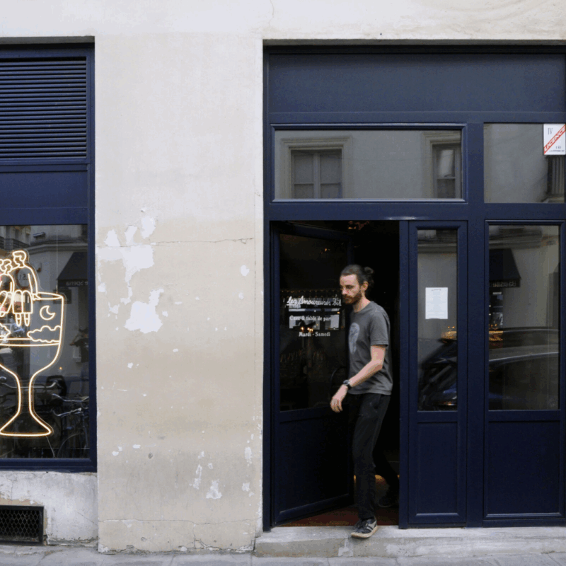 Materiais como aço inoxidável, piso de micro cimento, couro vegano e acabamentos monocromáticos nas molduras existentes contribuem para a atmosfera memorável do espaço.