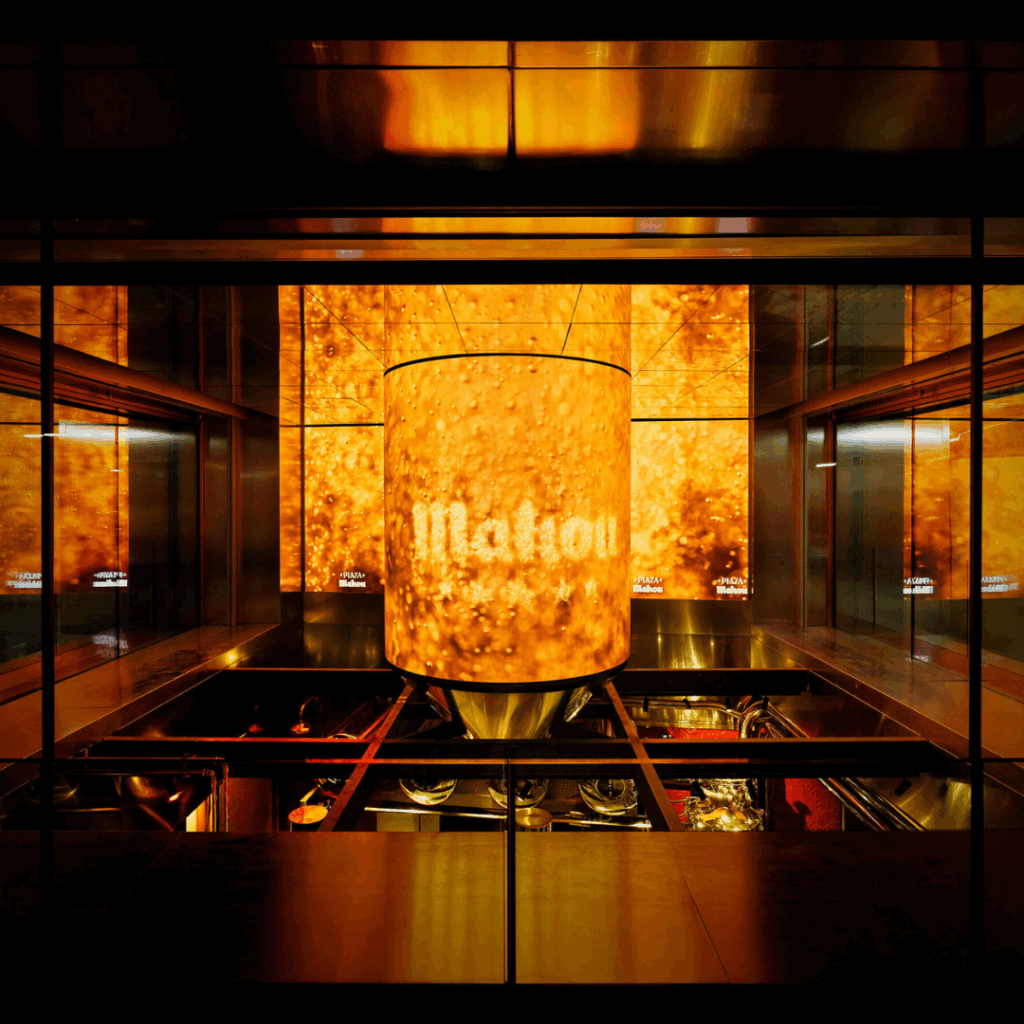 O projeto combina tecnologia avançada com artesanato e colaboração artística, refletindo os valores de Mahou em cada detalhe.