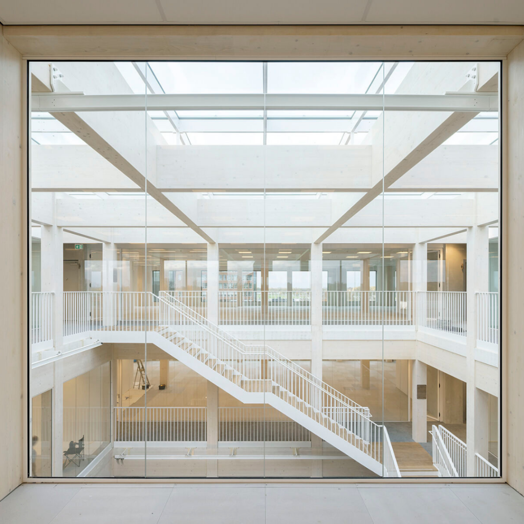 Desde o início, o projeto foi concebido como mais do que um exercício técnico, reunindo inovação estrutural, princípios de construção circular, sistemas de construção e um conceito espacial que apoia a colaboração e o uso diário.