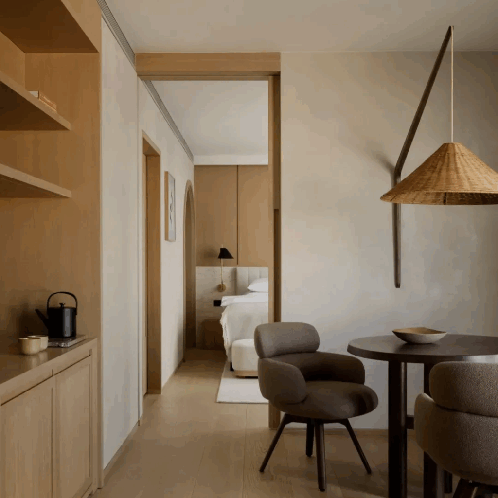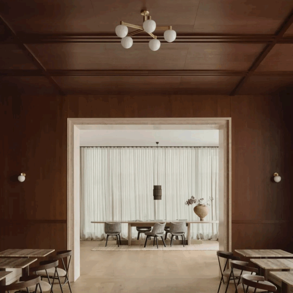 Os espaços públicos do térreo fluem com uma graça rítmica, quase doméstica, ancorada pelo MUND, um híbrido restaurante-padaria-bar de vinhos que parece menos um local e mais uma sala de estar cuidadosamente organizada.