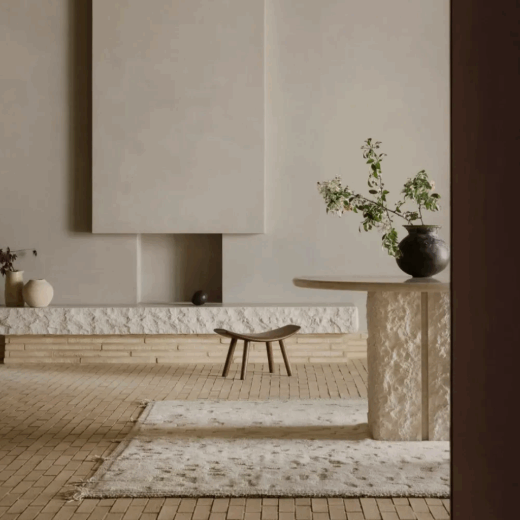 Tijolos feitos à mão, madeiras dinamarquesas e superfícies de pedra evocam um artesanato que resiste à moda.