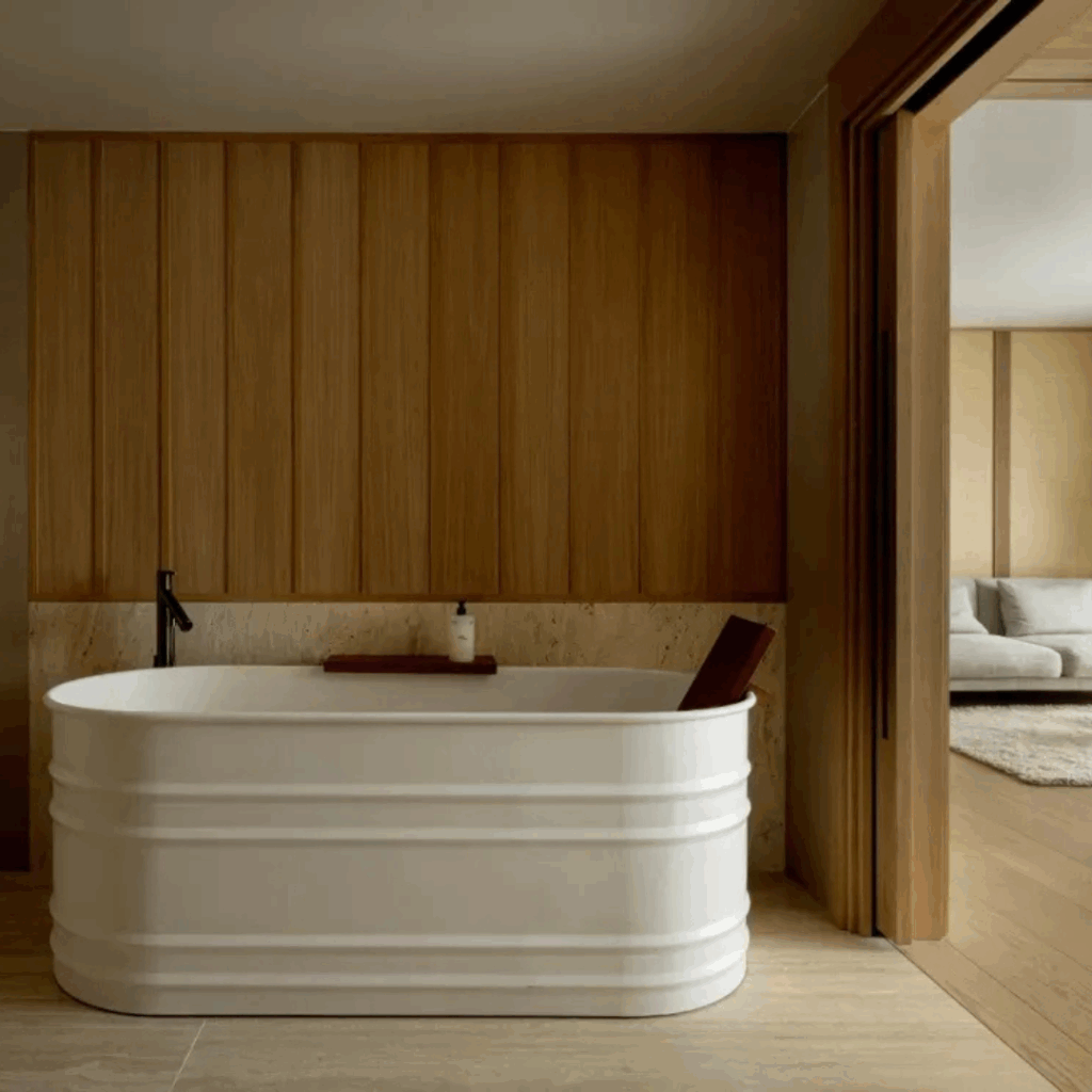 Até mesmo os banheiros, equipados com espelhos com moldura dourada e banheiras de imersão, parecem mais retiros tranquilos do que declarações de luxo.