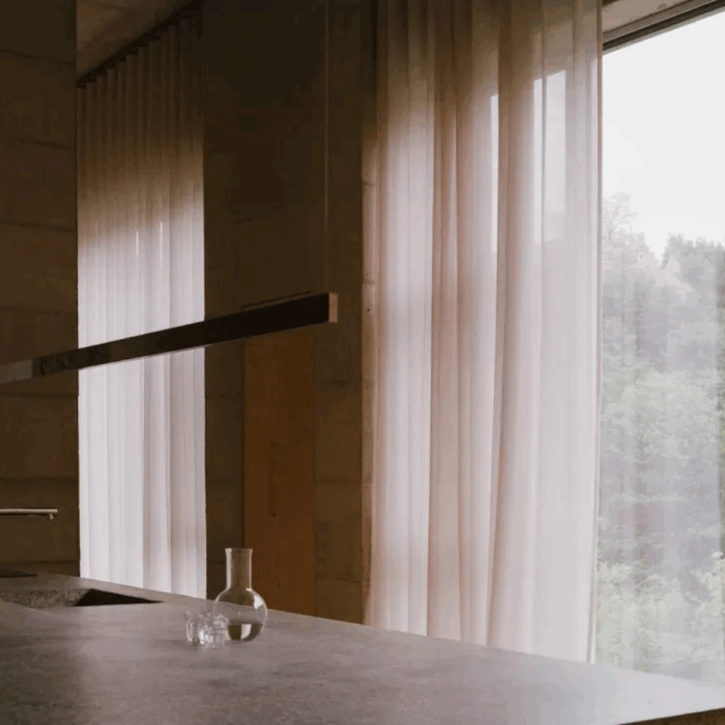 Em uma rejeição cuidadosa da iluminação direta e suspensa, a Casa emprega estratégias de iluminação indireta, difundindo suavemente a luz pelos tetos e paredes para criar interiores ambientes e calmantes, propícios à facilidade emocional e personalização.