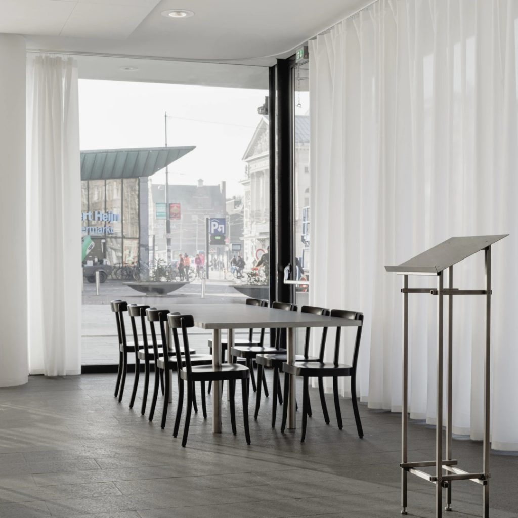 No StedelijK Museum Amsterdam, o arquiteto Camillo Fiorito reabre um espaço há muito fechado como o Sanberg, um restaurante que estende do Museumplein até o museu, onde o pavimento da praça, continua dentro de casa.