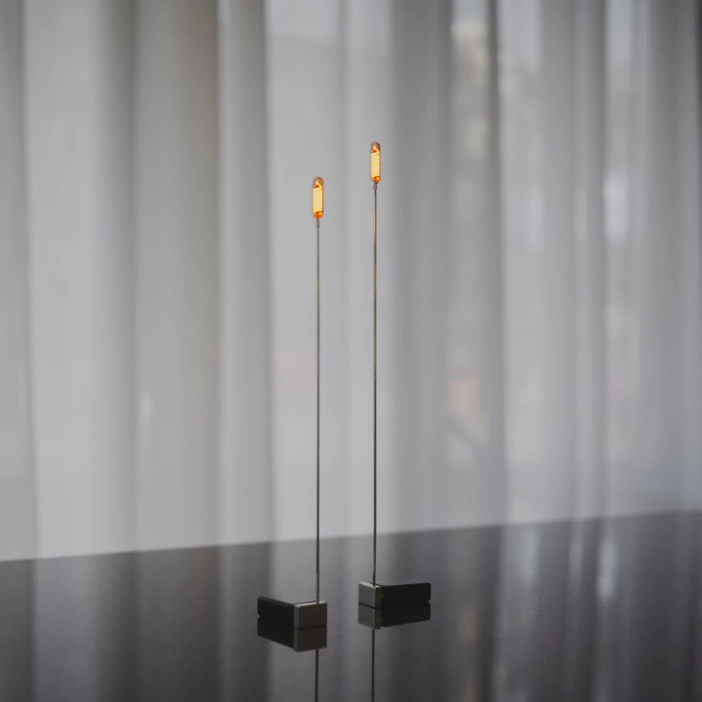 Como chamas abertas não são permitidas no museu, pequenas luminárias de mesa sem fio foram desenvolvidas especialmente para o projeto, projetadas em mente para a atmosfera e a escala da luz das velas.