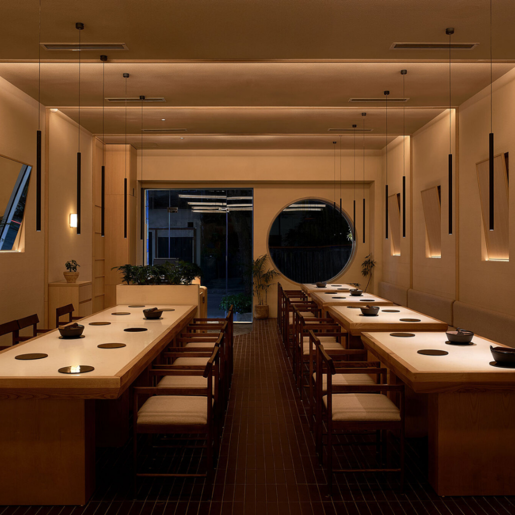 No geral, o restaurante foi projetado como um cenário refinado para momentos compartilhados ao redor do hot pot, onde pessoas, comida e arquitetura se reúnem.