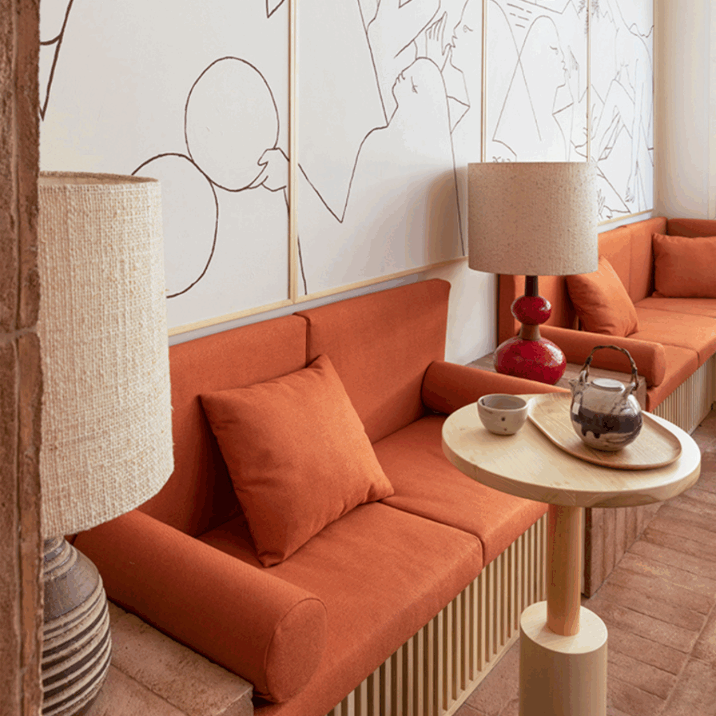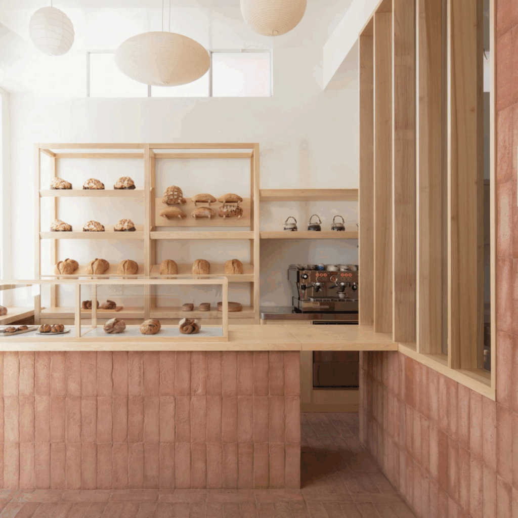A padaria, projeto do arquiteto Hannes Peer, traz a arte da panificação para um espaço cuidadosamente composto, onde tons de terracota e luz suave criam um diálogo entre forma e sabor.
