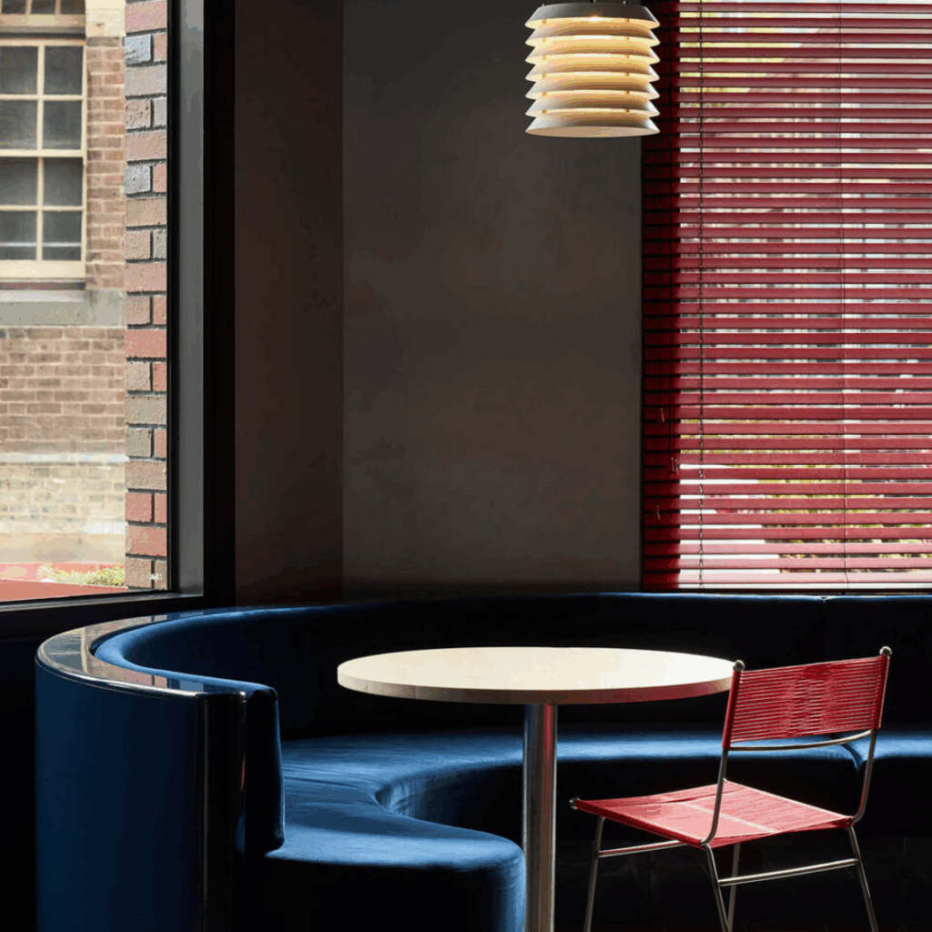 Posicionado dentro de um novo edifício de tijolos vermelhos existente ao longo de uma rua estreita no elegante centro tecnológico de Cremorne, Austrália, o arrojado e a sinalização angular se estendem da fachada envidraçada para capturar a atenção dos moradores que passam.