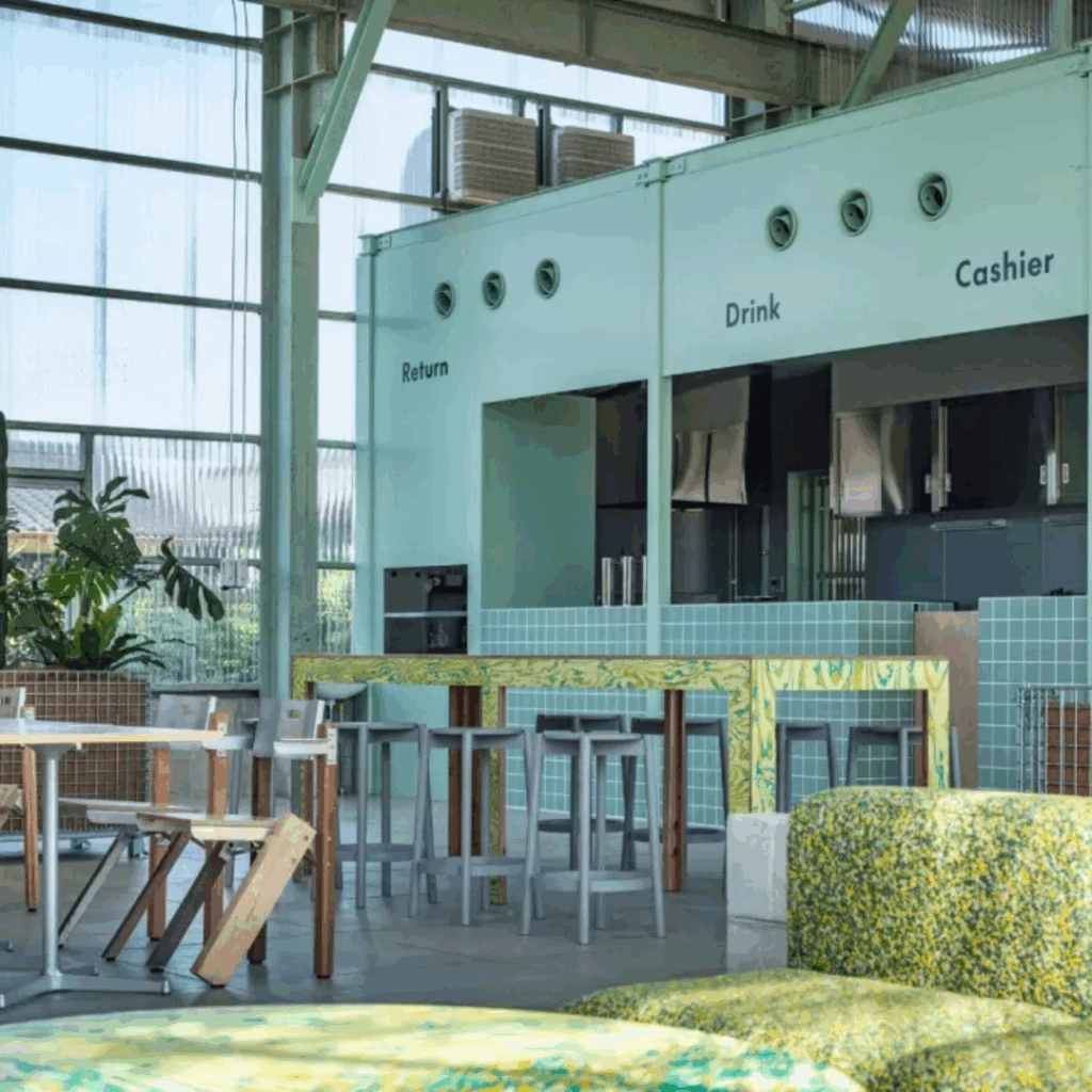 O Factory Cafe retoma este tópico: em vez de um novo monumento ousado, é um nó modesto no ciclo regenerativo da ilha.