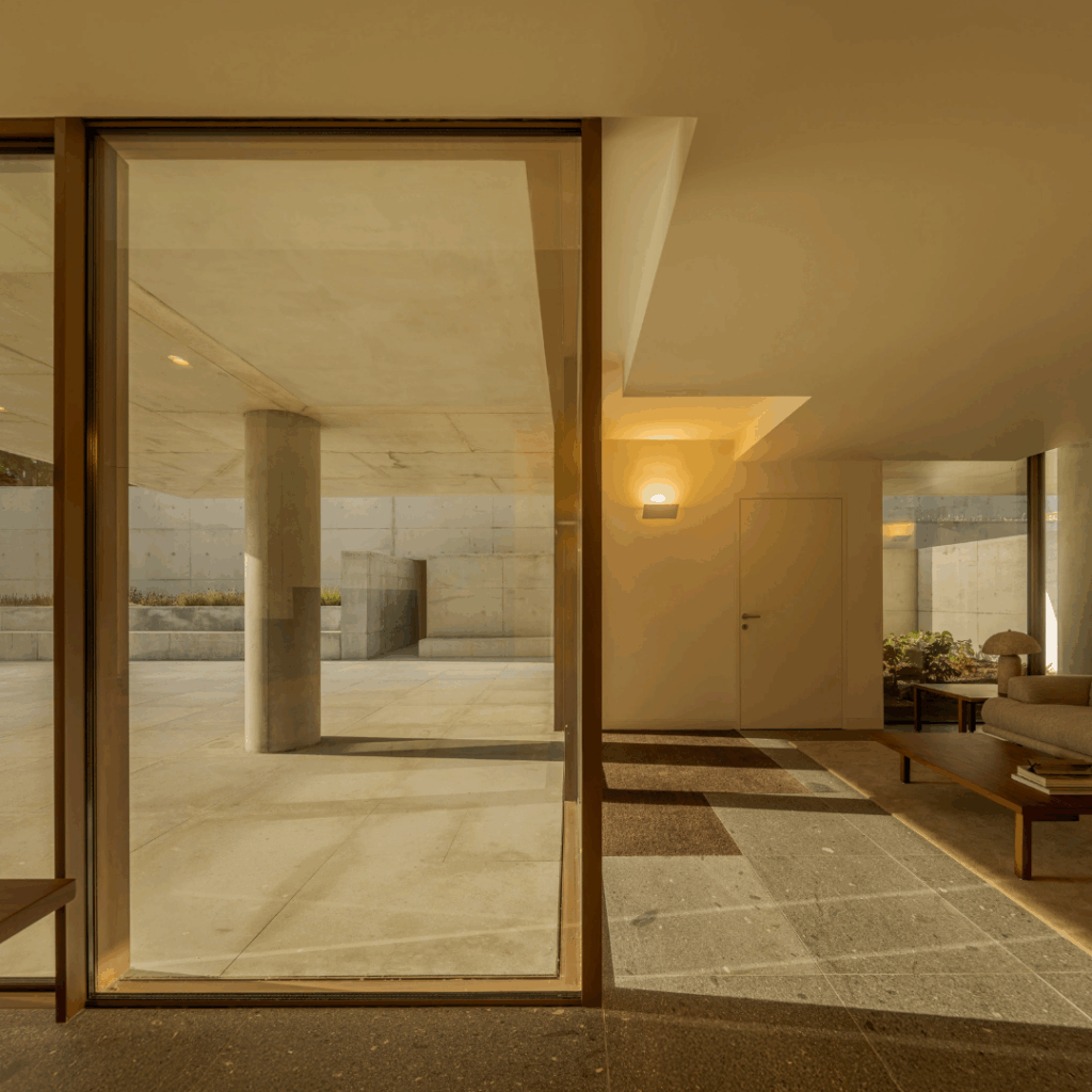 Entre a fluidez dos espaços comuns que se perdem na relação interior-exterior, e mesmo no horizonte longínquo, e a compartimentação dos quartos, os usos são privilegiados pela exceção.