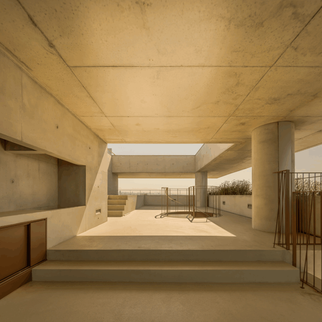 Estas varandas criam tanto o tema conceitual quanto a oportunidade para o exercício plástico e escultórico que foi concebido em concreto.