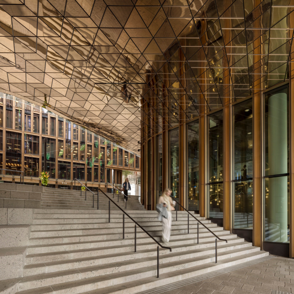 Inspirando-se na erosão gradual do solo pela água, o edifício é acessível por todos os lados e oferece aos pedestres uma rota tranquila entre duas ruas principais, Ruseløkkveien e Munkedamsveien.
