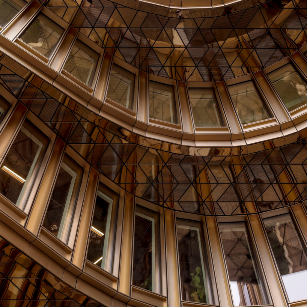 A arquitetura, do Schmidt Hammer Lassen Architects, interpreta as características e alturas dos volumes ao redor e adiciona uma nova e única expressão arquitetônica.